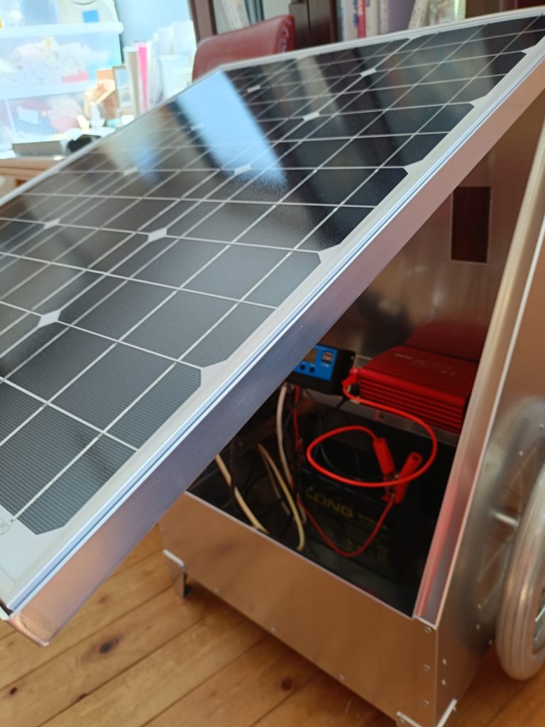 雨天の多い日本で野外に利用するには不安に思われるケースがあったり、また防災時の支援等でもと利回りがしやすいように、2011年藤野電力発足当初にも施策していたアルミ製の移動型キットを相模原市SDGs連携推進補助金を利用して開発することになりました。